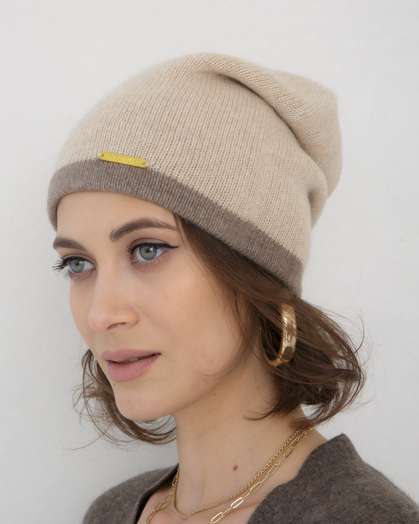 Шапка из кашемира 04186 бежевая